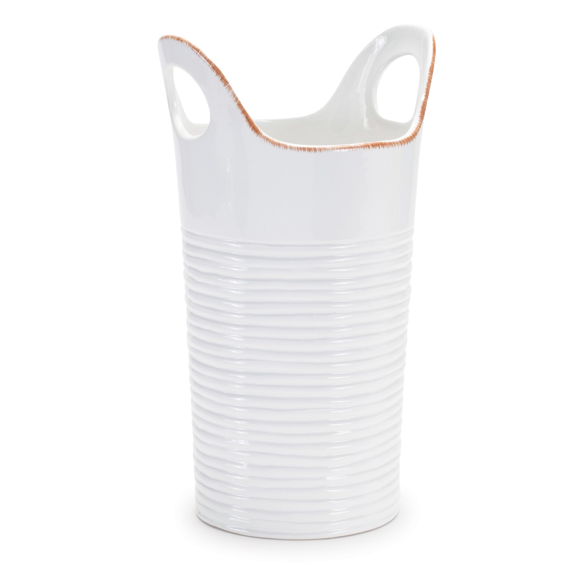 Enhance your home with this beautiful set of Decorative Ceramic Vases. Featuring two pieces, this set is a great fit for your country cottage or farmhouse style of decor. The cool white tones paired with the rustic bucket design and handle accents is perfect to create a stunning display. The quality ceramic composition is sure to last for seasons to come. Complete the look by adding a bunch of dried florals or fresh garden flower stems to the vase, or gift it to a loved one to share the beauty!