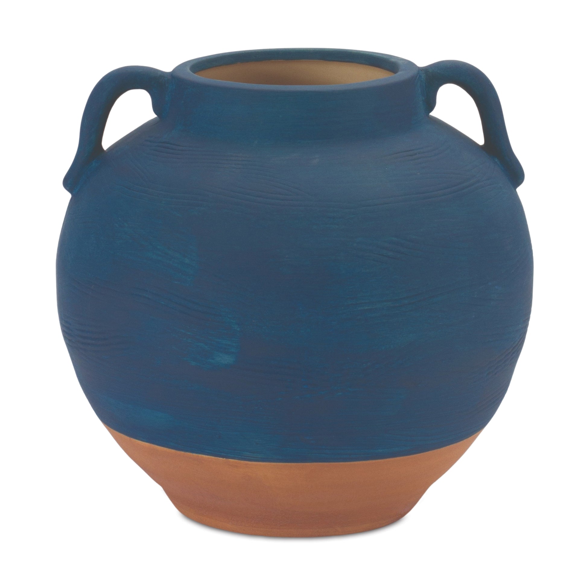 Instantly upgrade your home decor with this elegant Ceramic Urn Vase. Perfect for displaying your freshly picked garden flowers, this vase features a traditional urn shape with handle accents, and comes in cool navy blue tones with natural terra cotta accent. Crafted from quality ceramic clay, it'll add a touch of class and sophistication to any room in your home. Get the Ceramic Urn Vase today and watch your home transform!