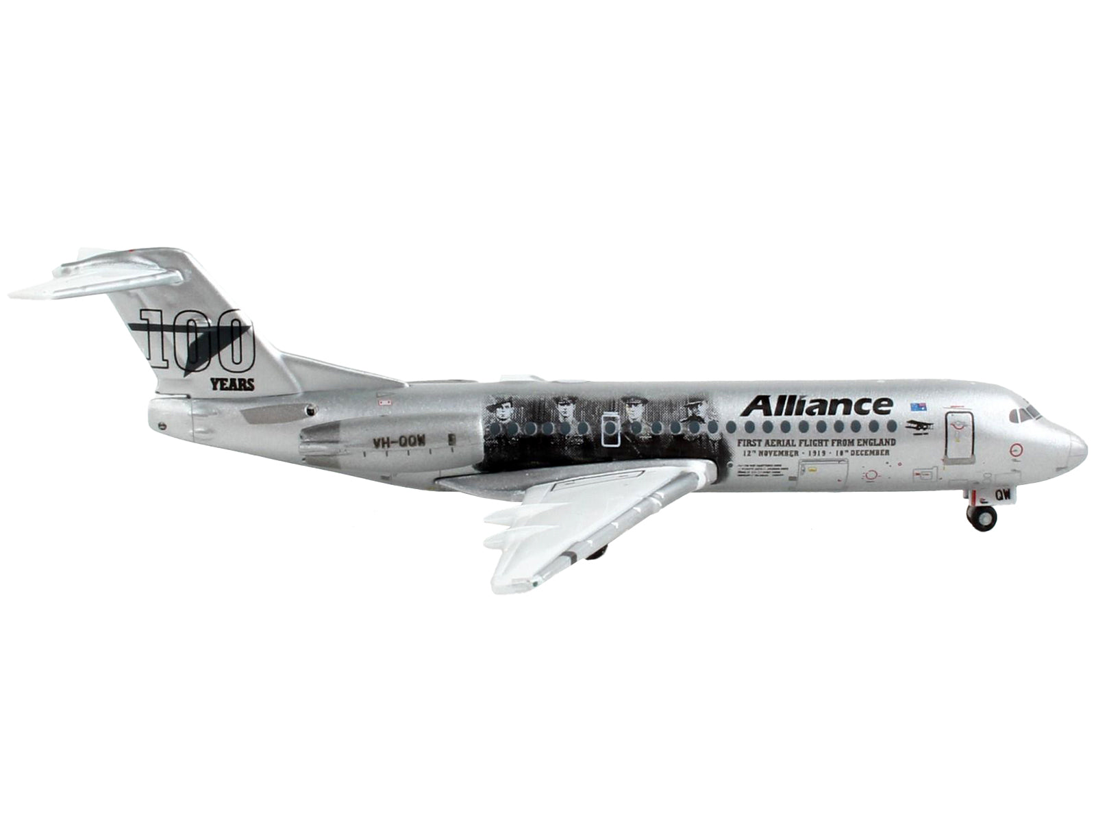 GeminiJets Fokker F70 Commercial Aircraft "Alliance Airlines - 100 Years First Flight from England" Silver Metallic 1/400 Diecast Model Airplane by GeminiJets