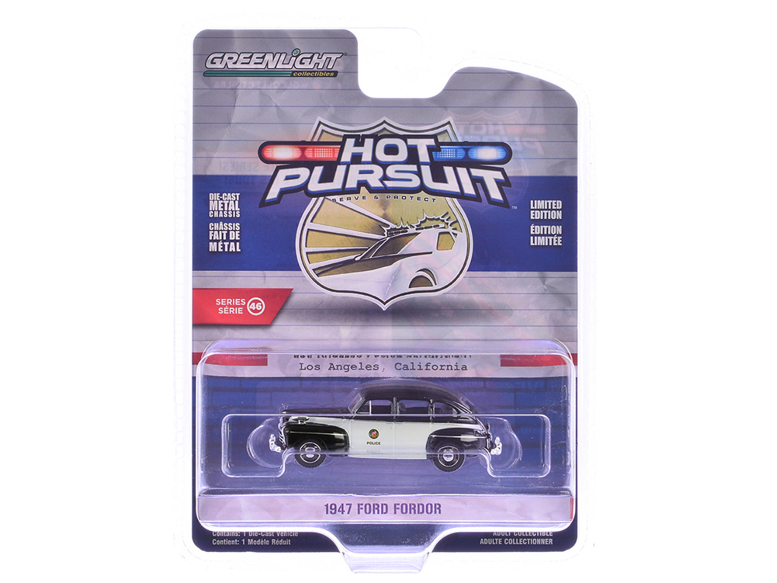 Greenlight 1947 Ford Fordor "LAPD (Los Angeles Police Department)" Black and White "Hot Pursuit" Series 1/64 Diecast Model Car by Greenlight