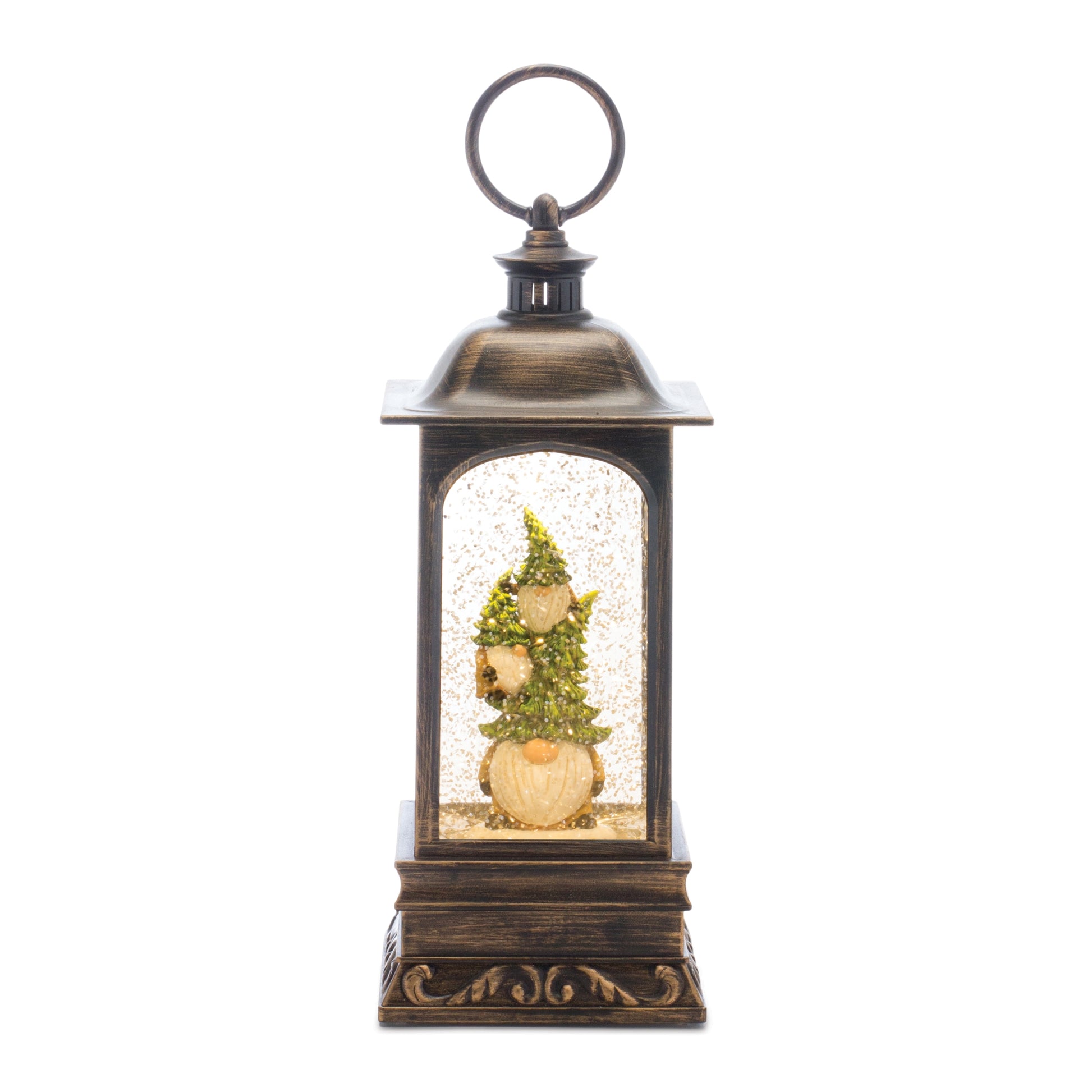 LED Snow Globe Lantern with Gnome Stack 9.75"H