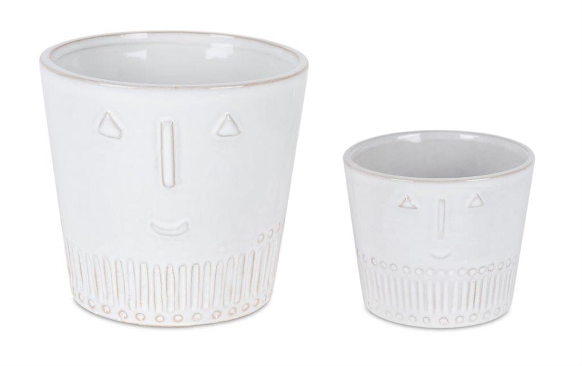 Display your plants in style with this chic set of glazed Decorative Porcelain Face Pots. Featuring two assorted sizes, the fun smiley-face design paired with the neutral white hue is the perfect combination to create a stunning display. The quality terracotta and glaze finish is sure to last for seasons to come. Complete the look by dropping in a faux potted plant or silk tree.