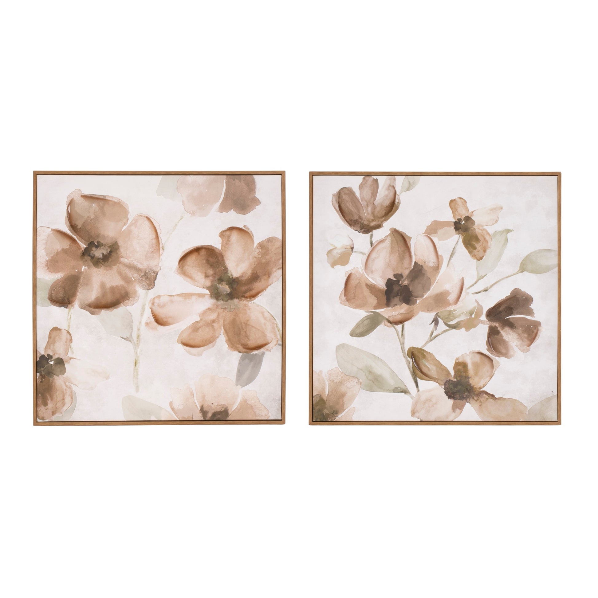 Adorn the walls of your home with this stunning set of Floral Plaques. Featuring two assorted designs, this set is a great fit for your French cottage or garden chic style of decor. The warm beige tones paired with the wood frame and watercolor floral artwork are perfect to create a memorable display. The quality wood and plastic composition is sure to endure for seasons to come. Arrange these pieces together to make a statement, or hang them in different rooms to enhance your living space.